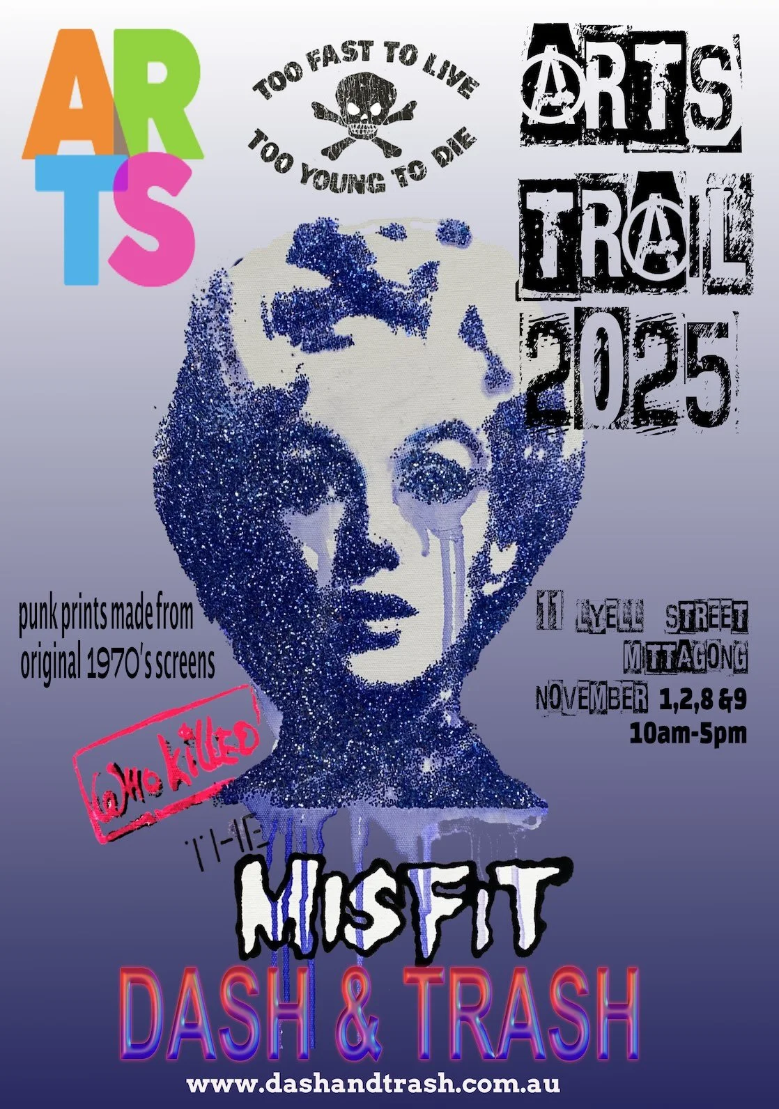 ‘Dash and Trash’ is a glam rock, punk, art and fashion label from London. Original designs are handcrafted from scratch or upcycled from existing garments and embellished with glitter, screen prints and patches. 'Dash and Trash' is the current label of Graham Power whose roots are firmly set in the hazy days of the Kings Road and UK Rave culture. Early designs were worn by Blondie, John Galiano and Naomi Campbell. Collections were sold in iconic stores including ‘Trash and Vaudeville’, New York and Boy London.Dash and Trash create in a shed on the property where they live. The exhibition is taking place in the Zero Central Circus school warehouse.